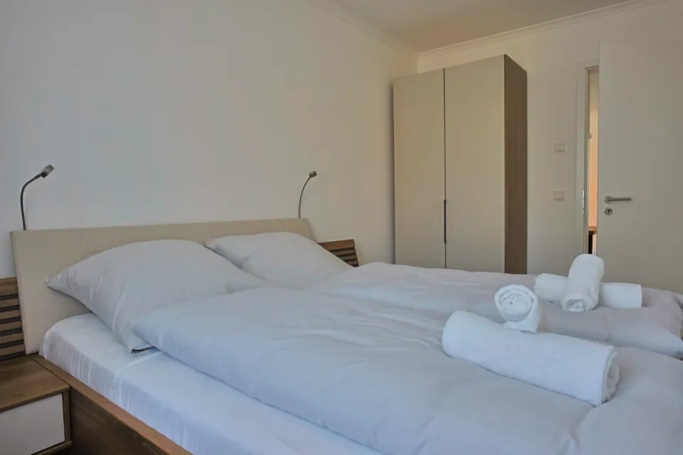 Alle Wohnungen verfügen über 2 Schlafzimmer mit jeweils einem Doppelbett und großen Schränken.
